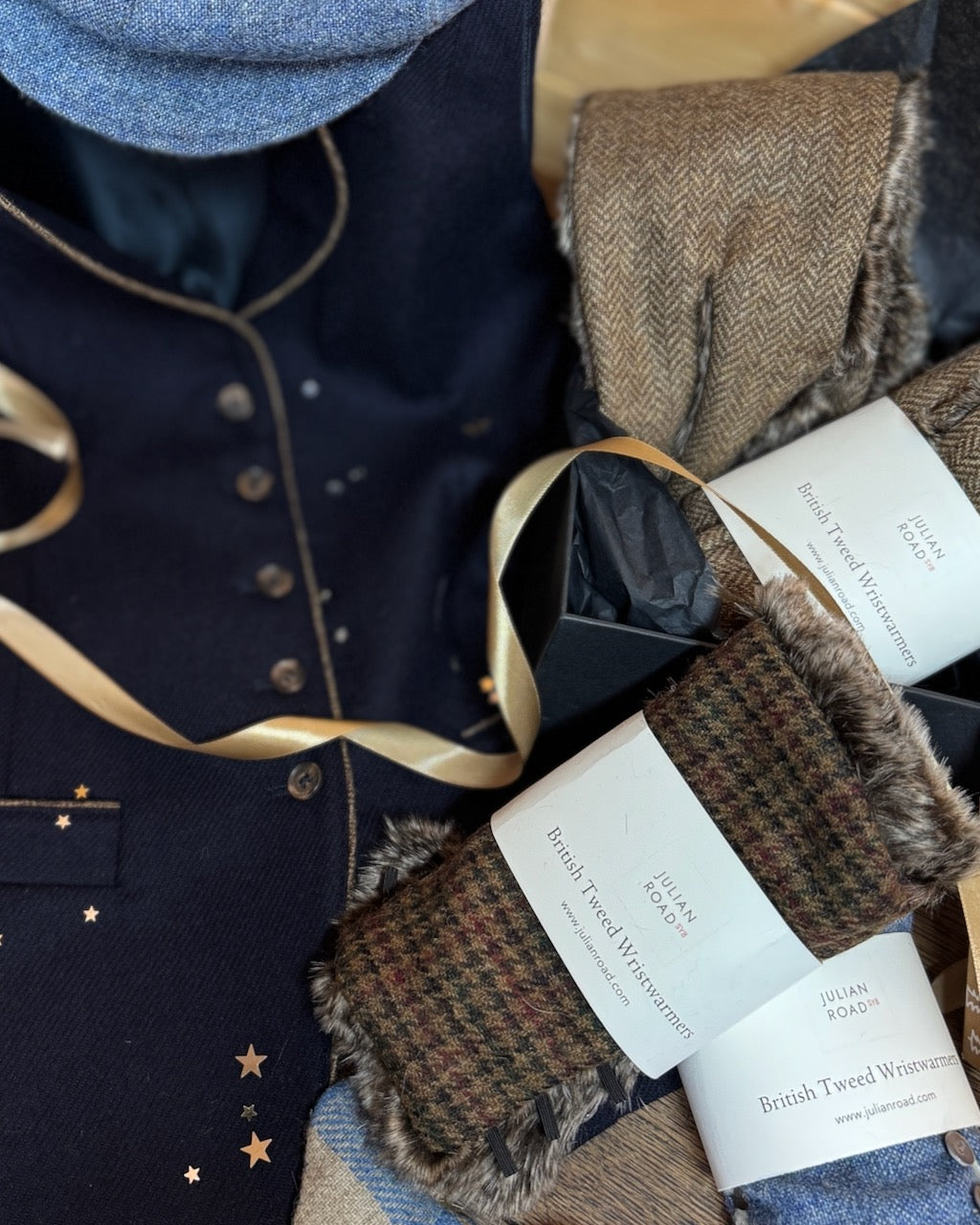 Keep your hands warm in style with our beautifully made British tweed wrist warmers, fully lined in the softest faux fur. Designed for comfort, versatility, and a touch of understated luxury, these wrist warmers are ideal for cold days when...